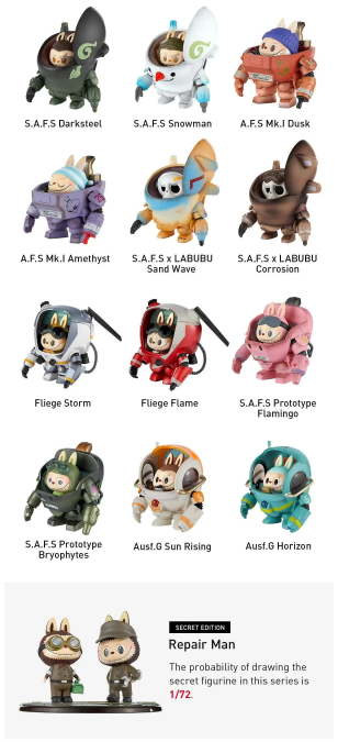 A bold crossover between POP MART’s beloved Labubu and legendary Japanese mecha designer Kow Yokoyama, creator of the iconic Maschinen Krieger (Ma.K.) universe.